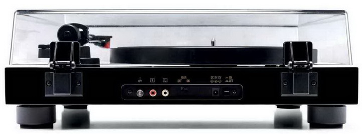 ВИД ЗЗАДУ: Вимикач живлення знаходиться праворуч, поруч з ним підключається зовнішній блок живлення. Внутрішній фонокоректор (в центрі) можна обійти.